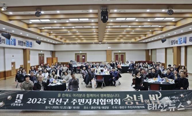 태산뉴스 이동욱 기자 | 권선구 주민자치협의회는 2025년 12월 22일 오후 6시, 권선구청 대회의실에서 '2025 권선구 주민자치협의회 송년회'를 개최했다.