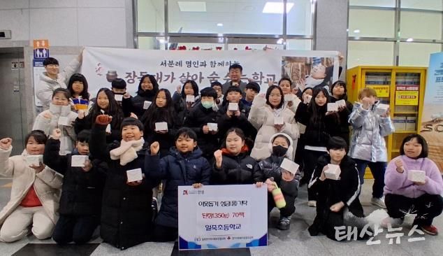태산뉴스 이동욱 기자 | 일죽면행정복지센터는 일죽초등학교 3~4학년 학생들이 서일농원과 함께 진행한 전통된장 만들기 프로그램에서 직접 만든 된장(1팩 350g) 70개를 일죽면 지역사회에 기부하며 따뜻한 나눔을 실천했다고 밝혔다.