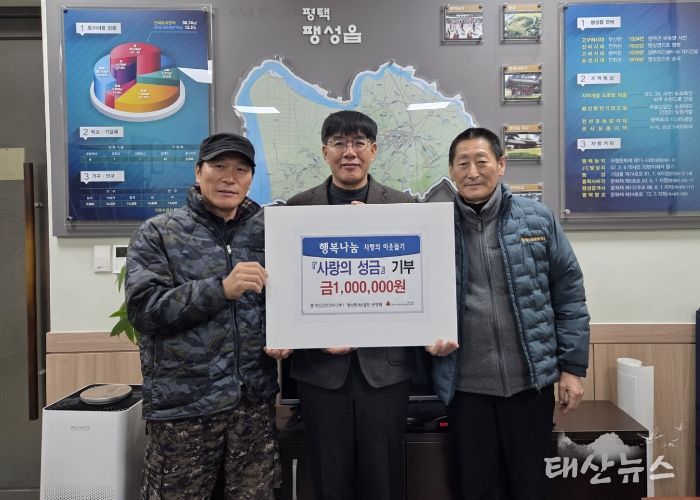 이근영 팽성읍장은 “지역을 위해 꾸준히 따뜻한 마음을 나눠주시는 분들이 있어 우리 읍은 더 큰 공동체 의식을 갖게 되는 것 같다”라며 “기부하신 성금은 도움이 필요한 주민들에게 잘 전달되도록 세심히 챙기겠다”라고 감사의 마음을 전했다.