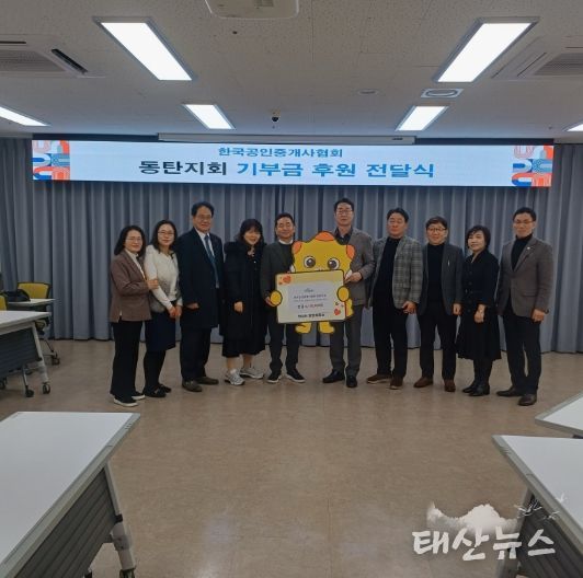 태산뉴스 이동욱 기자 | 화성특례시는 한국공인중개사협회 화성동탄지회(초록·중앙·리베라·호수·청계회 포함)에서 24일 화성시 동탄출장소를 방문해 어려운 이웃을 돕기 위한 기부금 619만 원을 기탁했다고 밝혔다.