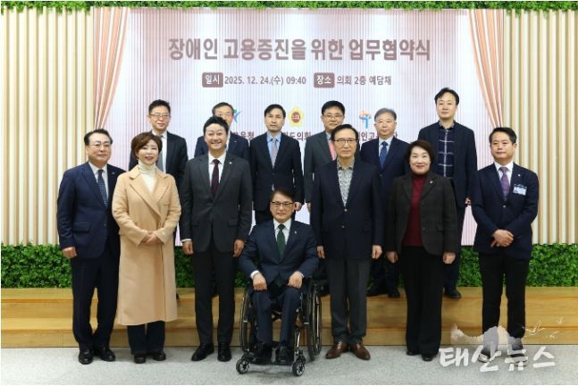 태산뉴스 김준수 기자 | 경기도의회 정경자 의원(국민의힘)의 제안으로 24일 경기도의회 예담채(2층)에서 경기도의회, 경기도교육청, 한국장애인고용공단이 장애인 고용증진을 위한 업무협약(MOU)을 체결했다.