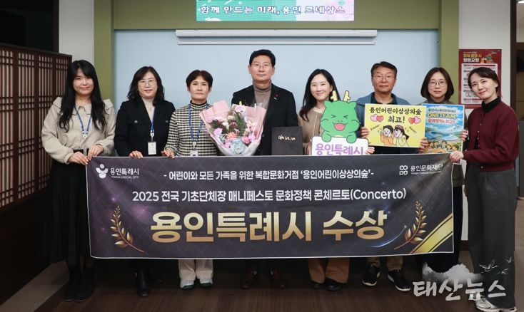 태산뉴스 이지율 기자 | 용인특례시는 23일 강원도 원주시에서 열린 ‘2025 문화정책 콘체르토(Concerto)’에서 최우수상을 수상했다고 25일 밝혔다.