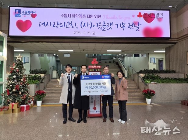 태산뉴스 이동욱 기자 | 더사랑의교회가 설립한 사회복지법인 ‘이음플랫’이 “취약계층 지원을 위해 사용해달라”며 26일 1000만 원을 수원시에 기부했다. 기부금은 사회복지공동모금회에 지정기탁 방식으로 수원시 취약계층 지원에 사용할 예정이다.