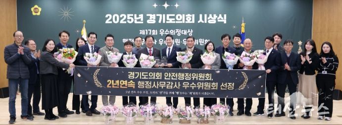 태산뉴스 김준수 기자 | 경기도의회는 26일 도의회 대회의실에서 제17회 우수의정대상 및 2025년 행정사무감사 우수의원 및 우수 위원회 등 시상식을 개최했다.