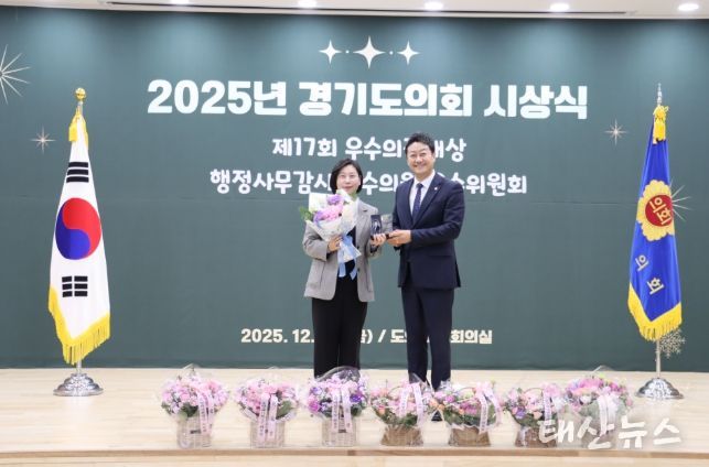 태산뉴스 김준수 기자 | 경기도의회 안전행정위원회 소속 이은미 의원(더불어민주당, 안산8)이 2025 경기도의회 행정사무감사 우수의원으로 선정됐다.