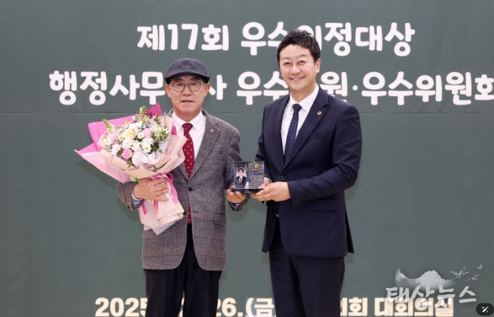 태산뉴스 김준수 기자 | 경기도의회 도시환경위원회 박명수 의원(국민의힘, 안성2)이 26일 경기도의회가 선정한 ‘제17회 우수의정대상 행정사무감사 우수의원’을 수상했다.