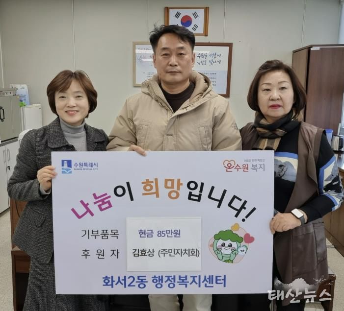 김효상 대표는 화서2동 주민자치회 문화복지분과장으로 활동하며, 평소 지역 주민의 복지 증진과 공동체 활성화를 위한 다양한 사업과 활동에 적극 참여해 왔다. 연말을 맞아 이웃을 위한 나눔을 직접 실천하고자 이번 성금 기부를 결정했으며, 특히 주민자치회 구성원으로서 지역사회에 대한 책임과 연대의 가치를 몸소 실천했다는 점에서 의미가 크다.