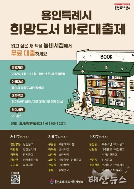 태산뉴스 이동욱 기자 | 용인특례시는 시민들의 높은 호응을 얻었던 희망도서 바로대출제를 내년 1월 2일부터 시행한다고 30일 밝혔다.