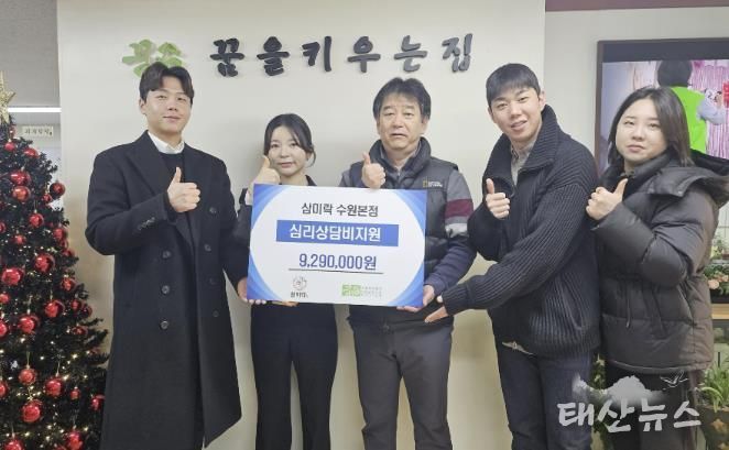태산뉴스 이동욱 기자 | 수원시 장안구 정자2동은 지난 29일 삼미락 수원본점으로부터 받은 후원금 929만원을 아동복지시설 ‘꿈을 키우는 집’에 전달했다고 밝혔다.