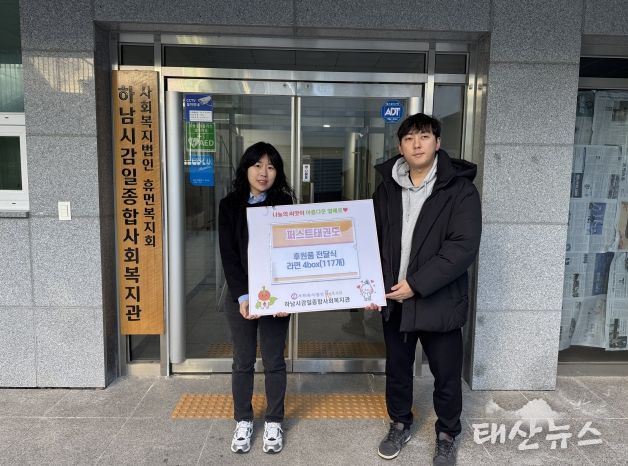 태산뉴스 이동욱 기자 | 감일퍼스트태권도장(관장 이양성)은 지난 12월 26일 하남시감일종합사회복지관(사회복지법인 휴먼복지회 운영)에 ‘사랑의 라면트리’ 라면 117개를 전달했다.