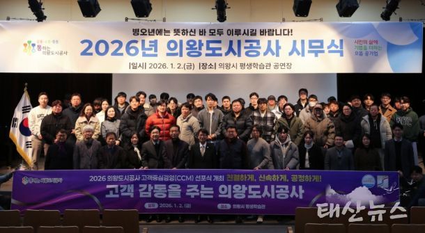 태산뉴스 이동욱 기자 | 의왕도시공사가 1월 2일 의왕시 평생학습관 3층 공연장에서 고객중심경영(CCM)을 실천하기 위한 선포식을 개최했다.