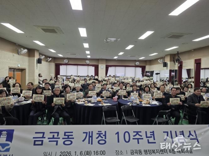 태산뉴스 이동욱 기자 | 2026년 개청 10주년을 맞은 권선구 금곡동은 지난 6일 지역구 의원과 주민 등 100여 명이 참석한 가운데 주민자치회 및 통장협의회와 함께 10주년 기념행사를 개최했다.