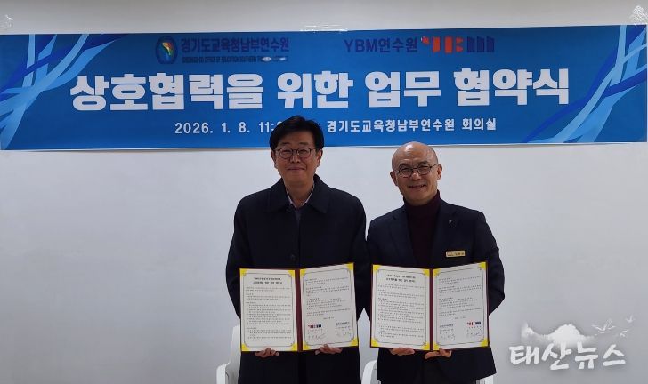 태산뉴스 김준수 기자 | 경기도교육청남부연수원이 8일 YBM연수원과 교원 연수의 질적 수준을 높이고 연수 운영의 전문성과 효율성을 강화하기 위해 업무협약을 체결했다.