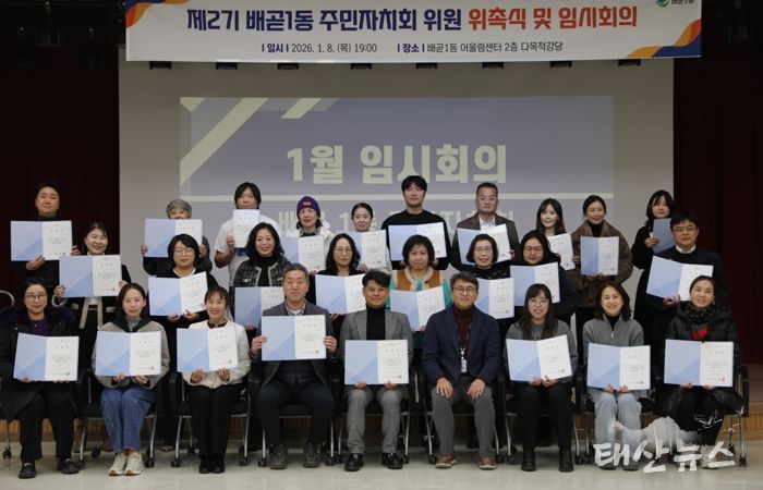 태산뉴스 이동욱 기자 | 시흥시 배곧1동은 지난 1월 8일 배곧1동 어울림센터 2층 다목적 강당에서 ‘제2기 배곧1동 주민자치회 위원 위촉식 및 임시회의’를 열고 주민자치회의 새출발을 알렸다.