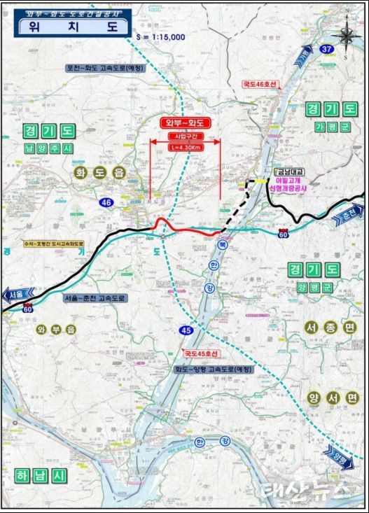 태산뉴스 김준수 기자 | 국가지원지방도 86호선 와부~화도 4.3㎞ 구간이 5년 8개월 동안의 공사를 마치고 13일 전격 개통된다.