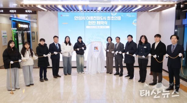 태산뉴스 이동욱 기자 | 안성시는 12일 안성시청 본관 1층 로비에서 “유니세프 아동친화도시 최초인증 현판 제막식”을 개최했다.