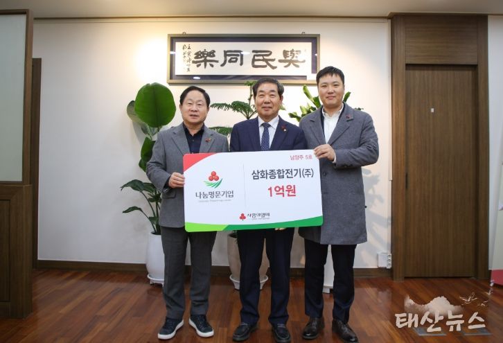 태산뉴스 이동욱 기자 | 남양주시는 14일 삼화종합전기가 사회복지공동모금회의 고액 기부 프로그램인 ‘나눔명문기업’ 5호로 가입하고, 지역 내 취약계층 지원을 위해 1억 원 기부를 약정했다고 밝혔다.