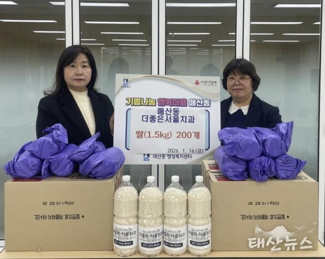 태산뉴스 이동욱 기자 | 수원시 팔달구 매산동은 지난 16일, 매산동 관내에 소재한 더좋은서울치과에서 지역 내 어려운 이웃을 돕기 위해 페트병 쌀 200개를 매산동 지역사회보장협의체에 후원했다고 밝혔다.