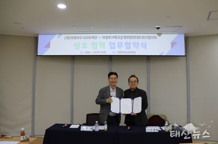 태산뉴스 이동욱 기자 | 의정부도시교육재단은 1월 15일 의정부시학교운영위원회네트워크협의회와 ‘지역 내 교육 자원 및 교과연계형 도시교육 사업 발굴을 위한 업무협약’을 체결했다고 밝혔다.