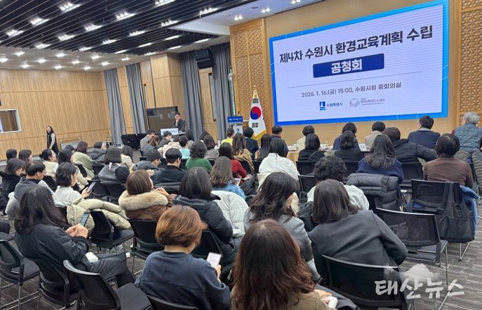 태산뉴스 이동욱 기자 | 수원특례시는 16일 수원시청 중회의실에 ‘제4차 수원시 환경교육계획(안)’ 공청회를 열고 의견을 수렴했다.