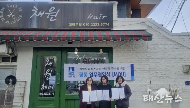 태산뉴스 이동욱 기자 | 평동 행정복지센터와 평동 지역사회보장협의체는 19일 오후 2시, 채원헤어(대표 김명희)와 ‘저소득 노인을 위한 무료 이미용 서비스 지원 업무협약’을 체결했다.