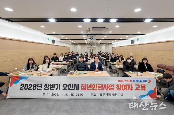 태산뉴스 이동욱 기자 | 오산시는 지난 19일 시청 물향기실에서 상반기 청년인턴 46명을 대상으로 직무역량 강화교육을 실시했다고 밝혔다.