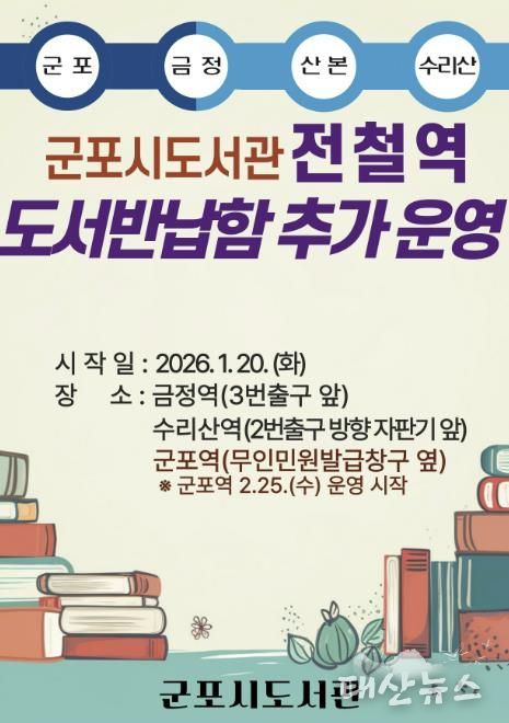 태산뉴스 이동욱 기자 | 군포시는 시민들의 일상 속 독서 접근성을 높이기 위해 2026년 1월 20일부터 관내 전철역(도시철도역) 통합도서반납함 운영을 확대한다고 밝혔다.