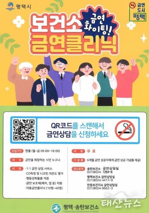 태산뉴스 이지율 기자 | 평택시는 금연을 희망하는 시민들이 금연클리닉 정보무늬(QR코드)를 통해 편리하게 금연 상담 서비스를 이용할 수 있도록 금연클리닉을 운영하고 있다.