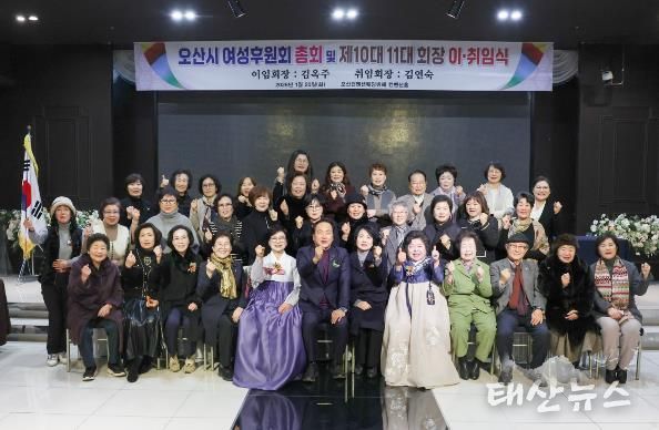 태산뉴스 이동욱 기자 | 오산시여성후원회는 지난 20일 오산 컨벤션웨딩홀에서 정기총회와 함께 제10대 김옥주 회장 이임식 및 제11대 김연숙 회장 취임식을 개최했다.