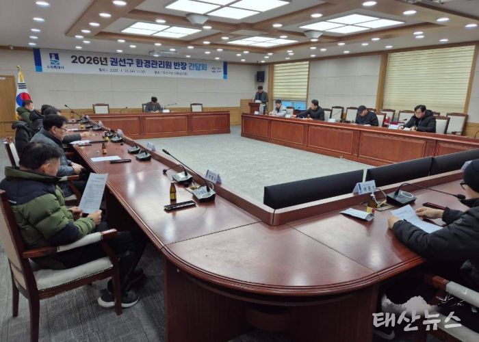 태산뉴스 이동욱 기자 | 권선구 환경위생과는 최일선에서 일하는 환경관리원들을 격려하고 애로사항을 청취하고자 ‘환경관리원 간담회’를 2026년 1월 21일 오전 11시에 개최했다.