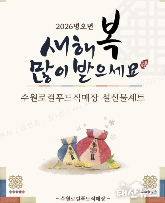 태산뉴스 이동욱 기자 | 수원로컬푸드직매장이 설 명절을 맞아 1월 26일부터 2월 9일까지 우리 농산물로 구성된 ‘설 명절 선물 세트’ 사전예약 판매를 한다. 택배 신청은 2월 9일 오전까지 할 수 있고, 배송은 2월 9~13일 이뤄진다.