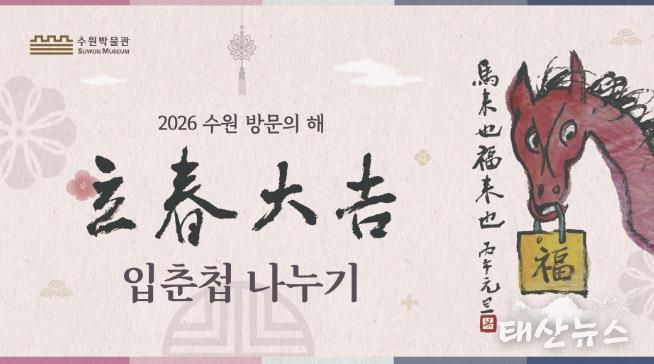 태산뉴스 이동욱 기자 | 수원박물관이 2026 수원 방문의 해를 맞아 1월 31일 오후 1시부터 3시까지 박물관 1층 로비에서 세시(歲時) 행사 ‘입춘첩 나누기’를 연다. 관람객에게 서예가 근당 양택동 선생의 친필 입춘첩을 배부한다.