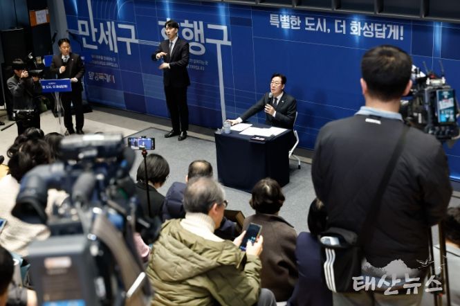 태산뉴스 이동욱 기자 | 화성특례시는 27일 화성동탄중앙도서관에서 2026년 신년 기자회견을 열고, 4개 구청 출범을 시작으로 한 시정 운영 방향과 ‘더 화성답게’ 도약하기 위한 4대 전환 전략을 제시했다.