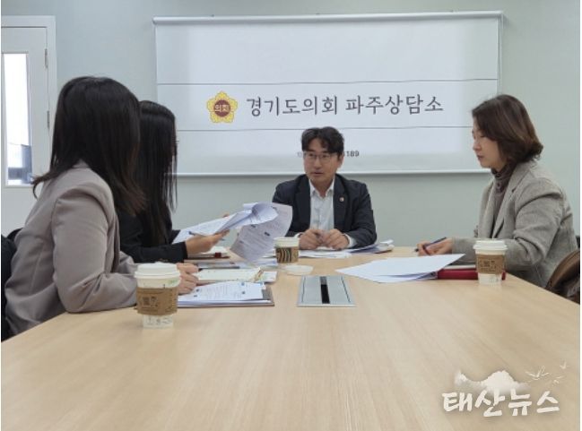 태산뉴스 김준수 기자 | 경기도의회 기획재정위원회 조성환 위원장(더불어민주당, 파주2)은 28일 파주상담소에서 파주시교육지원청 관계자들과 정담회를 열어, ‘2026학년도 파주형 학생전용 통학순환버스(파프리카) 운영안’을 보고받고, 지역별 노선 최적화와 학생들의 등하교 편의를 위한 구체적인 개선책을 논의했다.