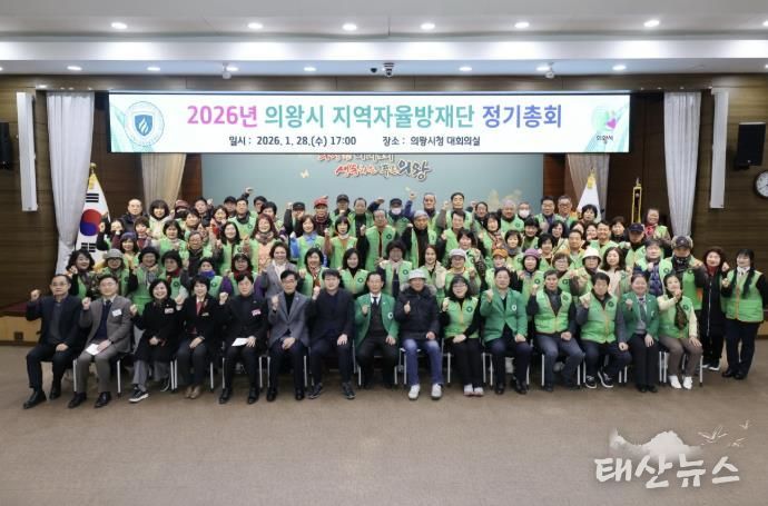태산뉴스 이동욱 기자 | 의왕시 지역자율방재단이 지난 한 해의 활동을 되돌아보고 새해 사업 추진 방향을 공유하기 위해 1월 28일 의왕시청 대회의실에서 자율방재단원 100여 명이 참석한 가운데 '2026년 정기총회'를 성황리에 개최했다.