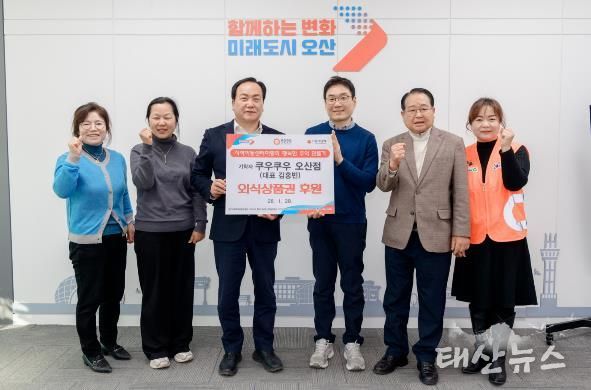 태산뉴스 이동욱 기자 | 오산시는 지난 28일 쿠우쿠우 오산점이 지역아동센터 이용 아동들의 건강한 성장과 행복한 추억 만들기를 위해 2026년 한 해 동안 ‘1일 1가정 외식상품권’을 후원하기로 했다고 밝혔다.