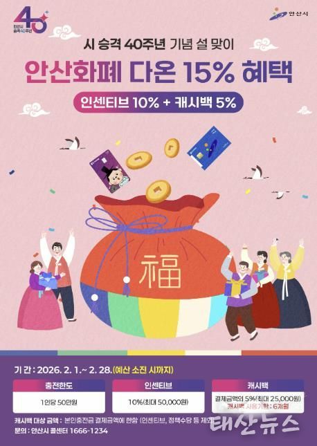 태산뉴스 이동욱 기자 | 안산시는 시 승격 40주년을 기념하고 시민들의 설 명절 부담을 덜어주고자 지역화폐 ‘다온’의 소비 혜택을 강화한다고 30일 밝혔다.
