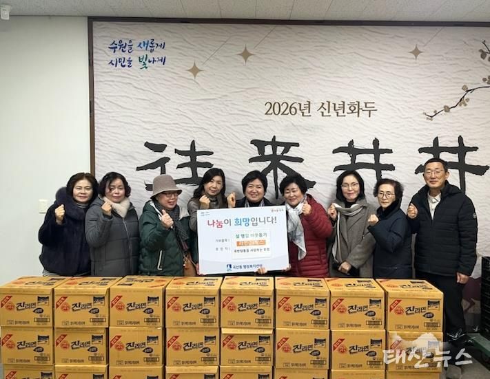 태산뉴스 이동욱 기자 | 지난 29일, 곡선동 대표 민간단체인 곡사모(곡반정동을 사랑하는 모임)는 설 명절을 맞이하여 지역 내 어려운 이웃들에게 따뜻한 마음을 전하기 위해 라면 24박스를 기부했다.