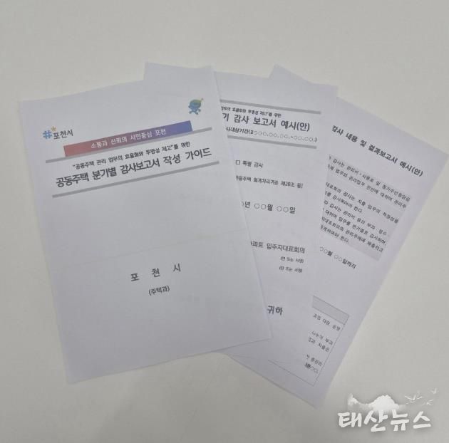 태산뉴스 이동욱 기자 | 포천시는 공동주택 입주자대표회의 감사 업무를 지원하기 위해 ‘공동주택 분기별 감사보고서 작성 가이드’를 제작·배포했다고 30일 밝혔다.