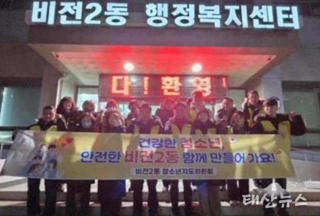 태산뉴스 이동욱 기자 | 평택시 비전2동 청소년지도위원회는 지난 28일 청소년들이 안전하고 건전한 환경에서 성장할 수 있도록 청소년 유해환경 점검 및 단속 활동을 진행했다.