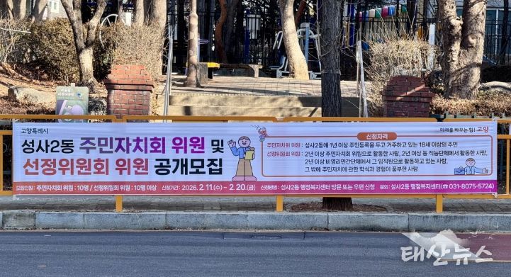 태산뉴스 이동욱 기자 | 고양특례시 덕양구 성사2동은 지역사회 발전과 주민 복지 증진을 위해 함께 봉사할 주민자치회 위원을 공개 모집한다고 밝혔다.