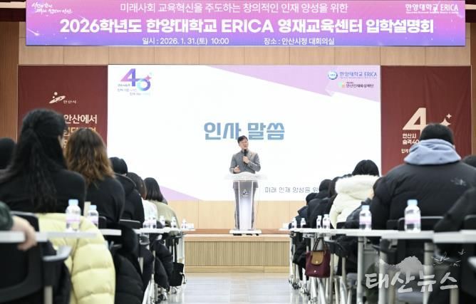 태산뉴스 김준수 기자 | 안산시는 지난달 31일 안산시청 대회의실에서 2026학년도 한양대학교 ERICA 영재교육센터 입학설명회를 개최했다고 2일 밝혔다.