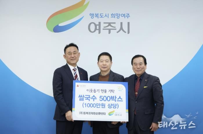 태산뉴스 이동욱 기자 | 지난 1월 30일 ㈜동북권자원순환센터는 여주시 방문하여 1000만원 상당의 이웃돕기 현물(쌀국수 500박스)을 기탁했다.