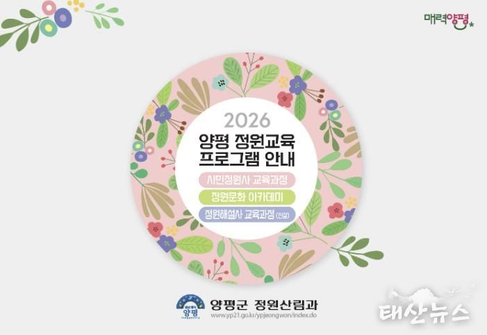 태산뉴스 이동욱 기자 | 양평군은 올해 제14회 경기정원문화박람회 개최를 앞두고, 특별 신설 교육과정을 포함한 2026년 정원교육 운영계획을 발표했다. 양평군 정원교육은 △시민정원사 △정원문화아카데미 △정원해설사 등 세 가지 분야로 운영된다.