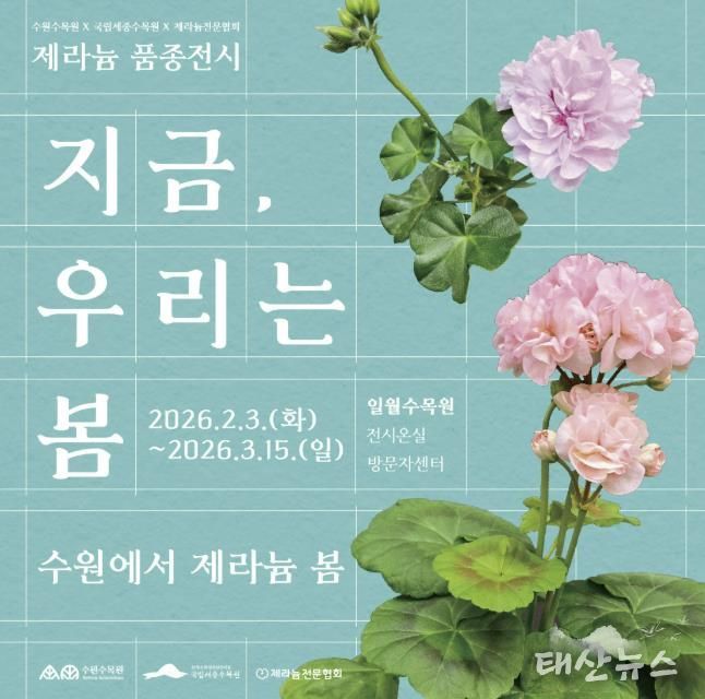 태산뉴스 이동욱 기자 | 수원특례시는 2월 3일부터 3월 15일까지 일월수목원에서 제라늄을 주제로 한 기획전시 ‘우린, 지금부터 봄(수원에서 제라늄 봄)’을 연다.