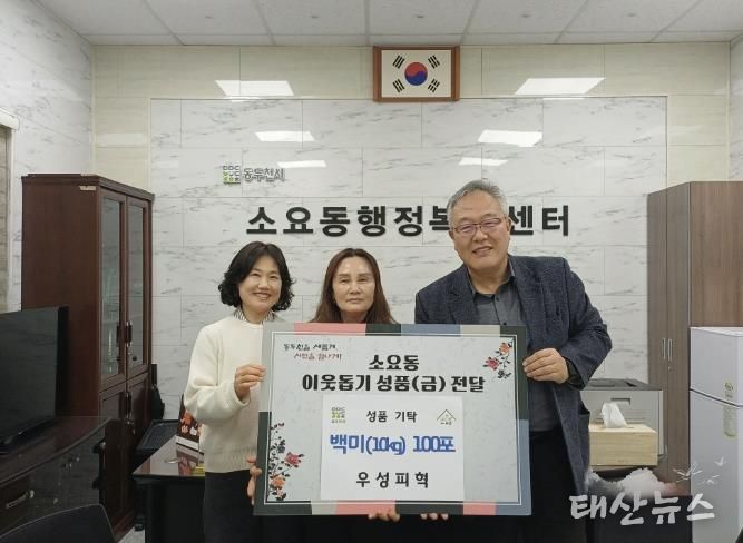 김승호 소요동장은 “어려운 이웃을 위해 한결같이 따뜻한 나눔을 실천해 주신 우성피혁 정소현 대표님께 깊이 감사드린다”라고 말했다.