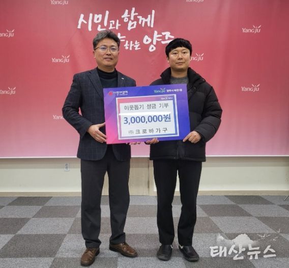태산뉴스 이동욱 기자 | (주)크로바가구는 지난 3일 겨울철을 맞아 지역 내 취약계층과 소외된 이웃을 돕기 위해 성금 300만 원을 회천1동 행정복지센터에 전달했다.