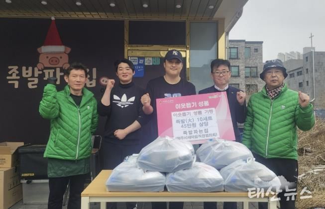 전달된 족발세트는 당일 조리한 신선한 족발과 함께 쌈채소, 막국수 등 든든한 한 끼를 즐길 수 있게 구성됐으며, 지역 내 취약계층 10가구에 전달됐다.