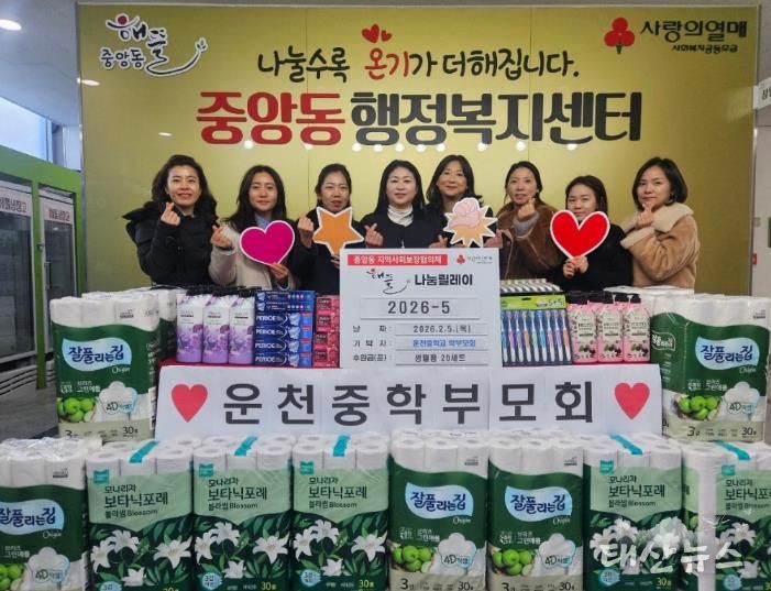 태산뉴스 이동욱 기자 | 오산시 중앙동 행정복지센터는 지난 5일 운천중학교 학부모회로부터 설 명절을 맞아 지역 내 저소득 어르신을 위한 생필품 20세트를 후원받았다고 밝혔다.