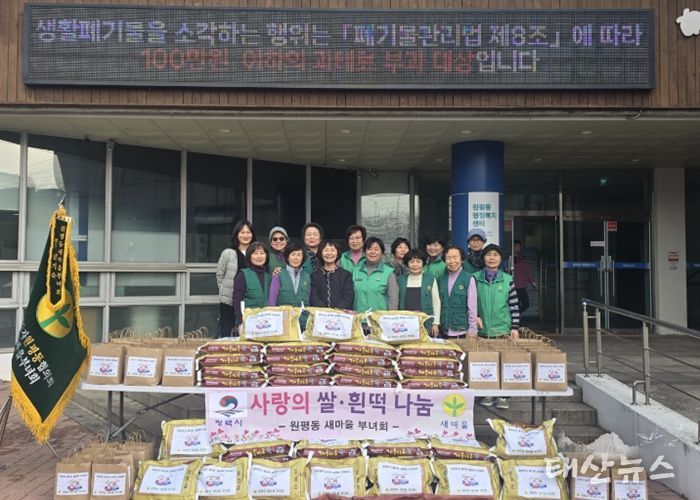 원평동 새마을부녀회에서는 관내 취약계층이 풍성하고 행복한 새해를 맞이할 수 있도록 매년 이웃들에게 쌀과 떡국떡을 전달하며 이웃사랑을 실천하고 있다.